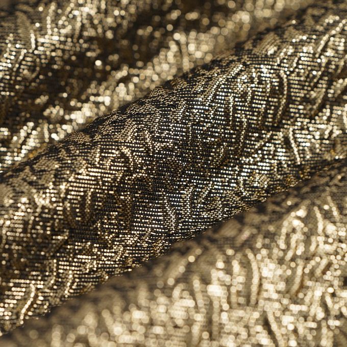 On adore ce magnifique tissu jacquard aux reliefs en dorés. il apportera beaucoup de lumière à toutes nos créations. De quoi réaliser nos plus belles tenues de fête : robe, jupe et top.