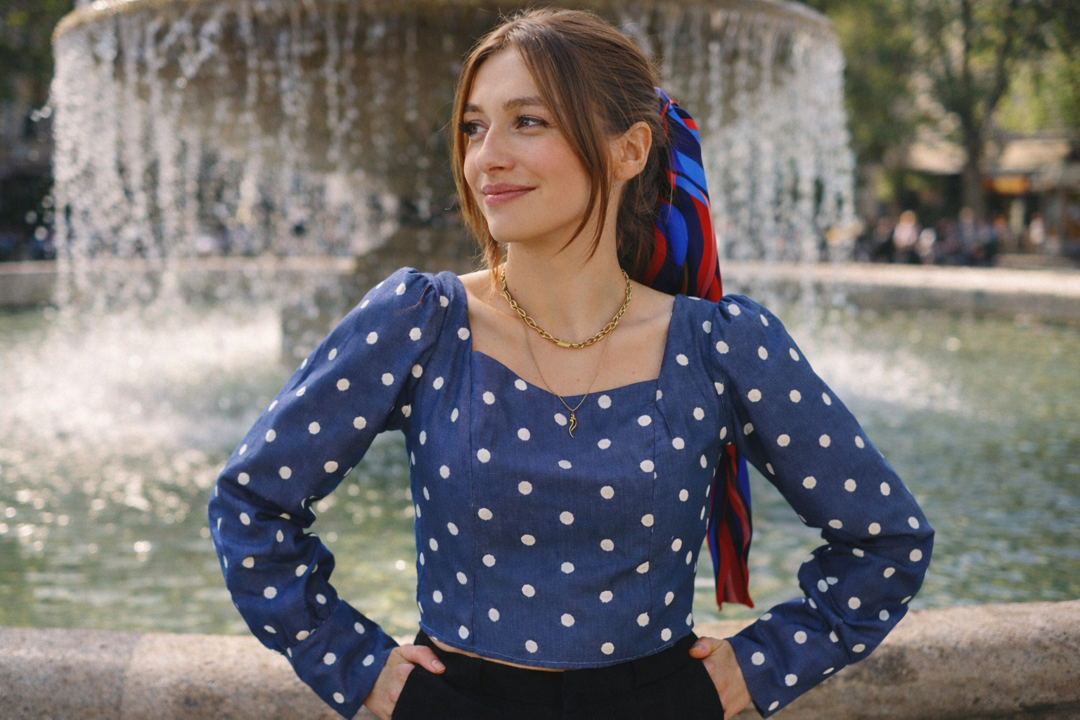 Inspirée d'une tenue phare d'Emily in Paris, la blouse Emily nous offre un look directement tiré de la série mode du moment. Réalisée dans un chambray à pois, on mise tout sur cet imprimé vedette de la saison à venir. Côté coupe, sa construction avec doublure intégrale garantit un tombé parfait, tandis que ses découpes latérales sculptent la silhouette avec élégance. On adore ses manches longues terminées par des poignets ajustés, ce détail signature ultra-parisien. Cette blouse incarne parfaitement le style Emily Cooper : assumé, moderne et terriblement chic.