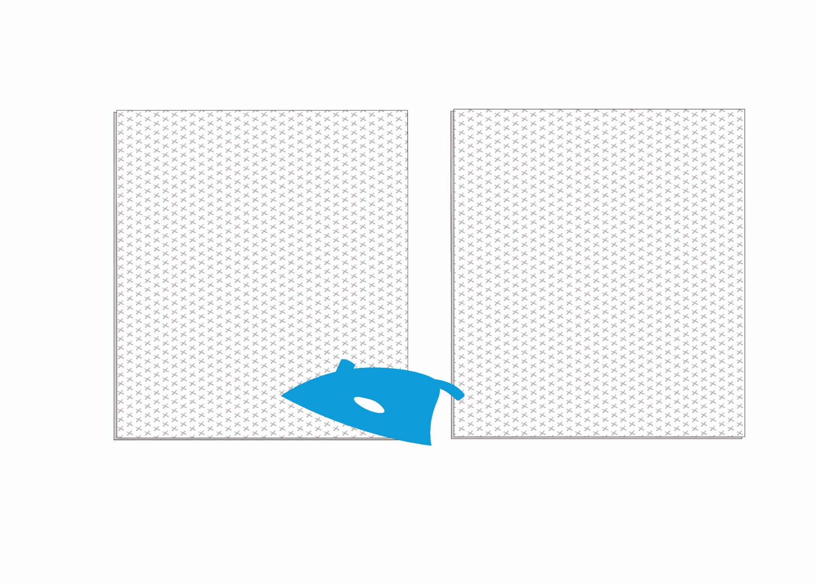 Entoiler les pièces (E). Pour cela, placer le tissu thermocollant face brillante sur l’envers du tissu. Avec le fer chaud et sec (sans vapeur) appliquer l’entoilage par des petits coups de fer : 5 à 6 fois pendant 8 secondes.