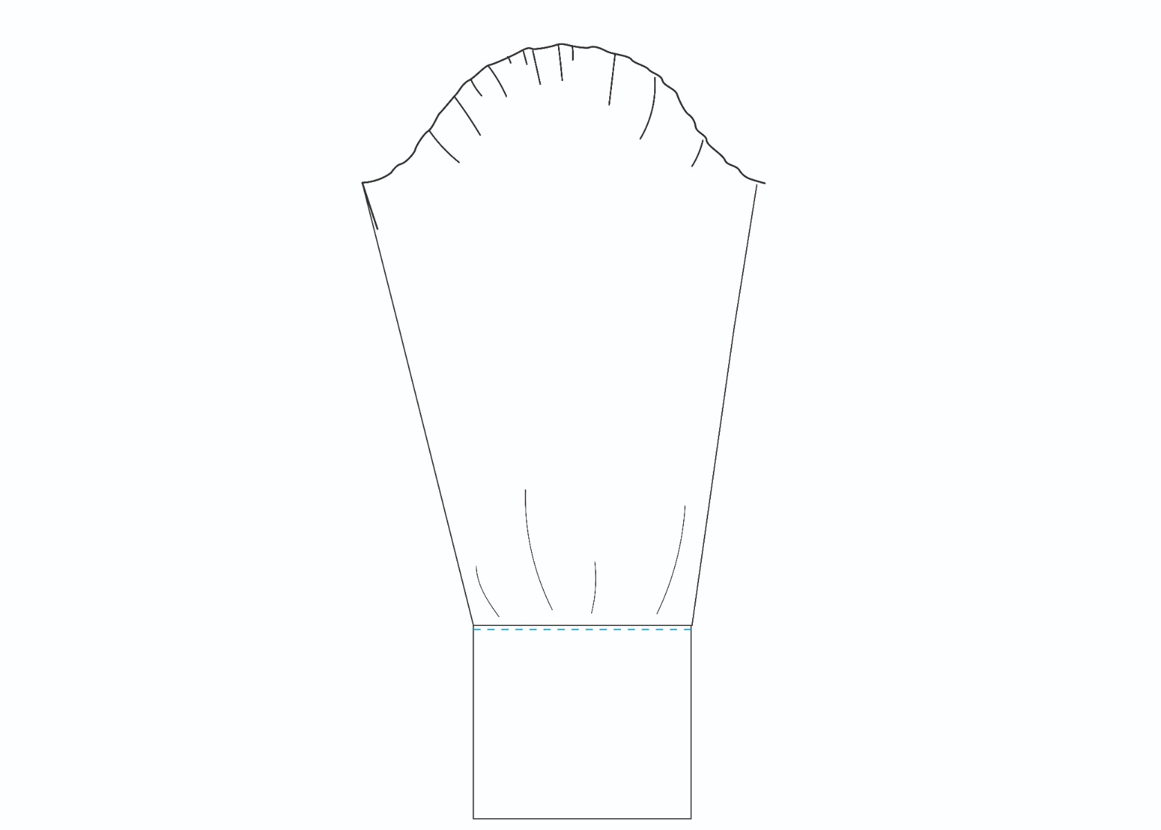 - La pièce A correspondant au côté devant de la bouse, à couper 2 fois dans le tissu et 2 fois dans la doublure